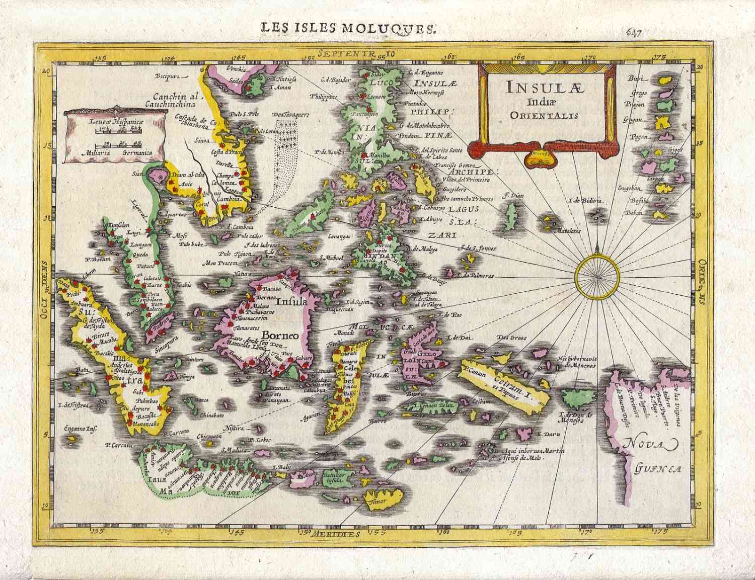 Kaart van Indonesië, Oost-Indië, in 1632 uitgegeven door Kaerius.
