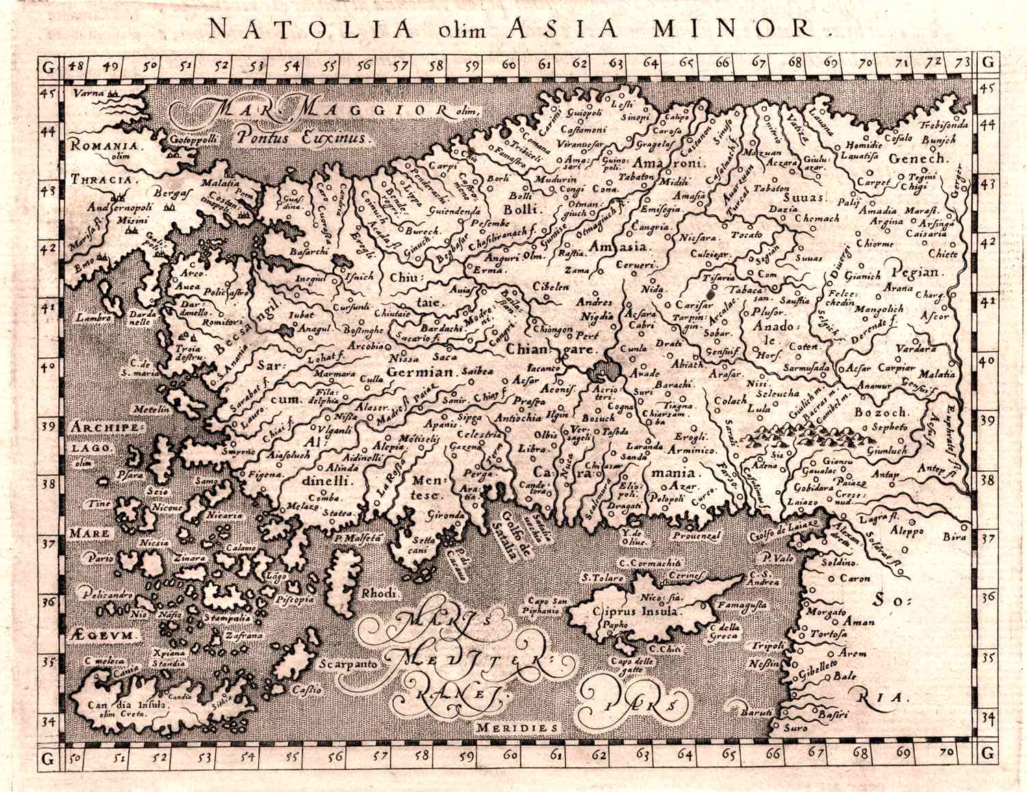 Kaart van Anatolië, het huidige Turkije, gemaakt door Giovanni Magini, uitgegeven in 1598.