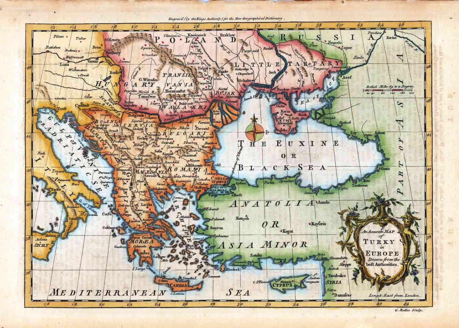 Fraai kaartje van Griekenland en Turkije (Asia Minor), in 1756 uitgegeven door Rollos.