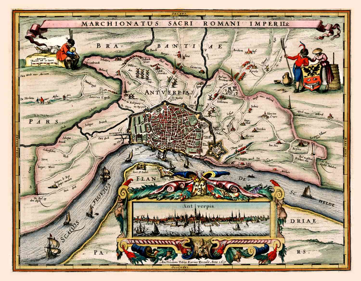 Beroemde kaart van Antwerpen Marchionatus Sacri Romani Imperii uit 1617, uitgegeven door Kearius.