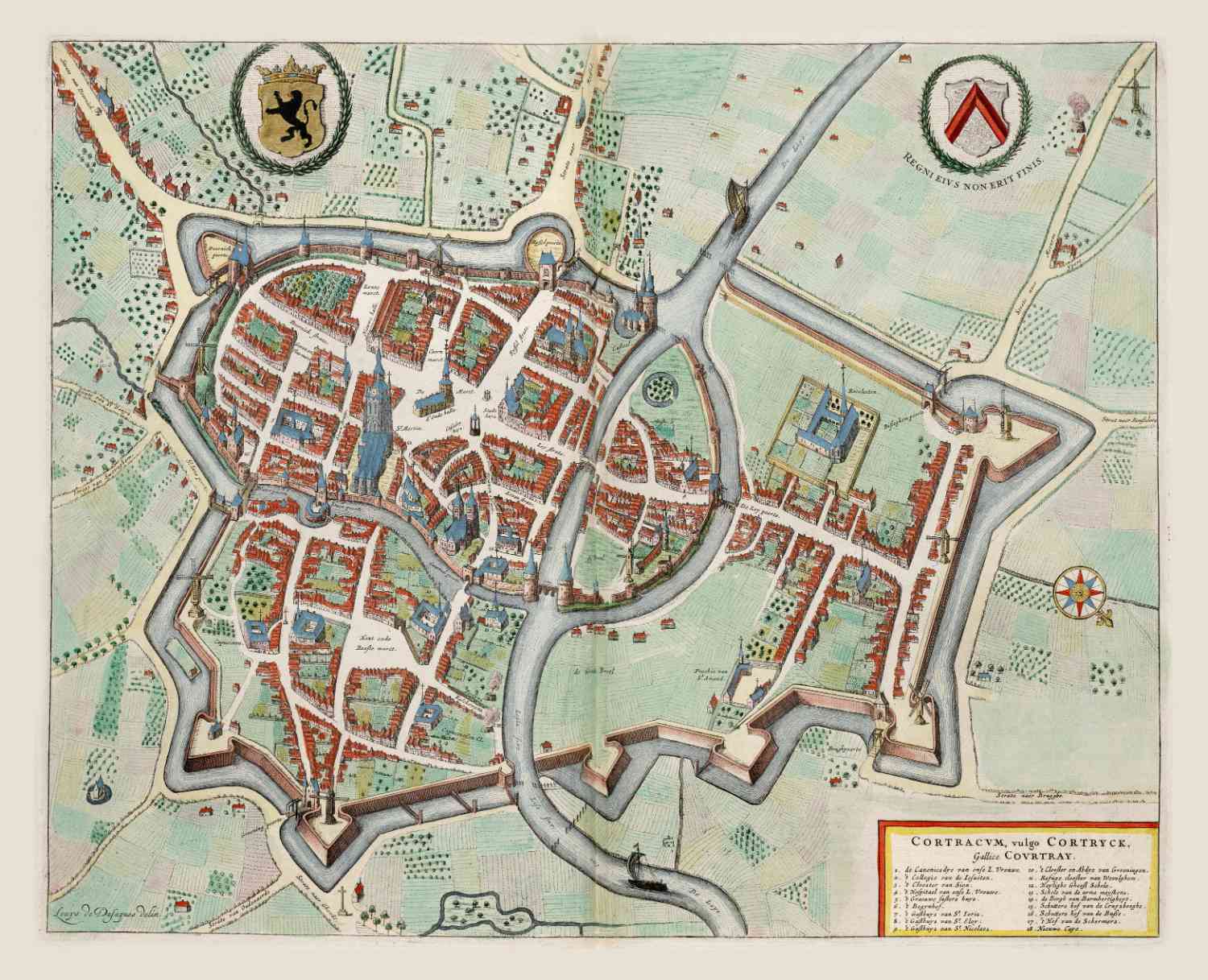 Stadsplattegrond van Kortrijk, in 1649 uitgegeven door Joan Blaeu.