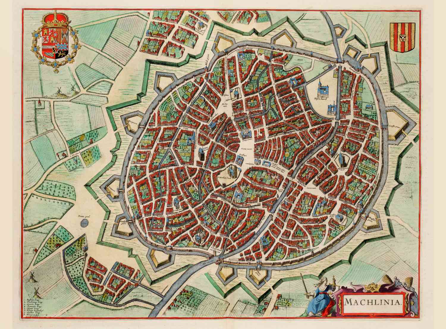 Stadsplattegrond van Mechelen, in 1649 uitgegeven door Joan Blaeu.