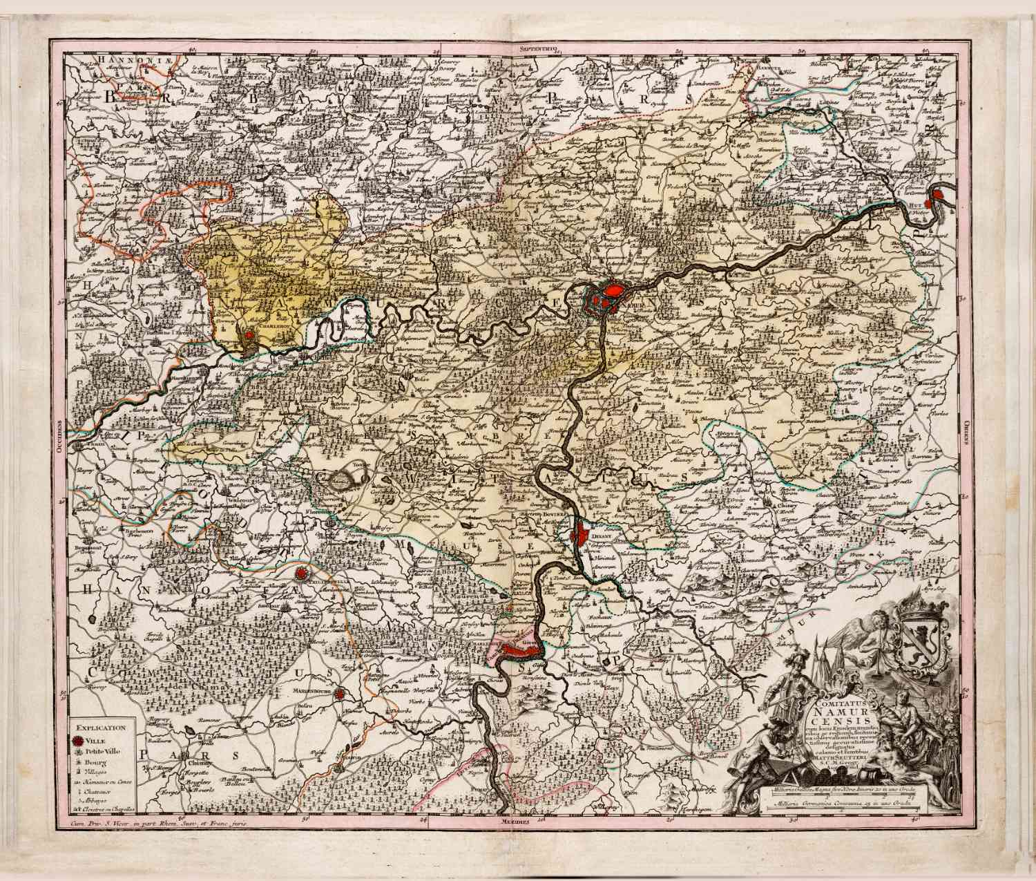 Kaart van de Belgische Provincie Namen en de loop van de Maas.