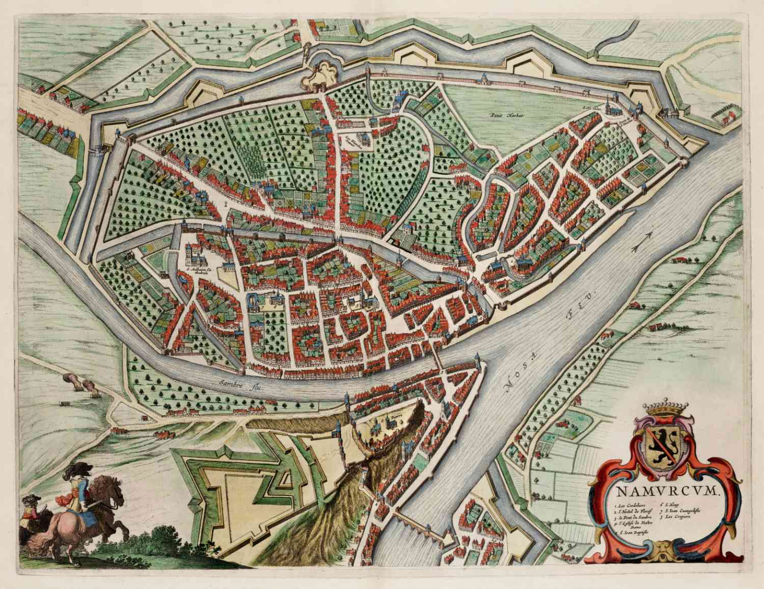 Stadsplattegrond van Namen aan de Maas, in 1649 uitgegeven door Joan Blaeu.