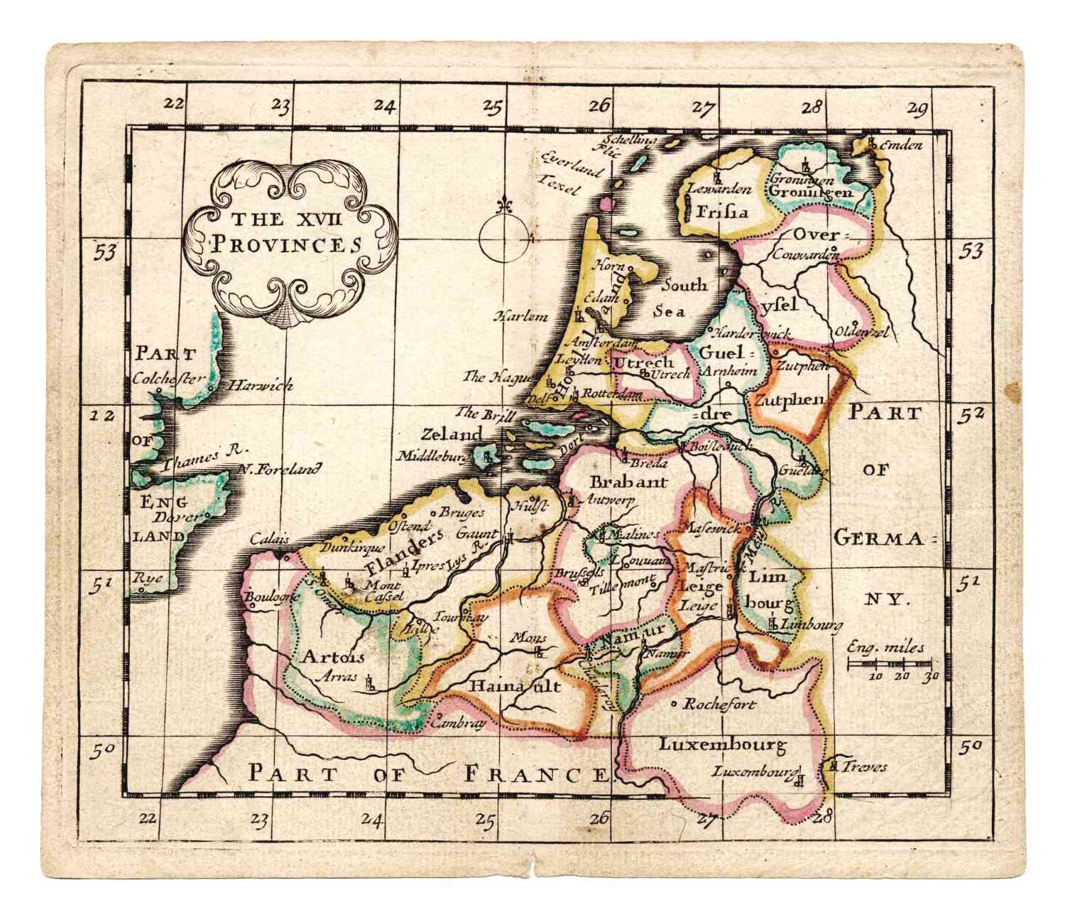 Kleine kaart van J.Seller (GB) voorstellend de 17 Nederlandse provincies