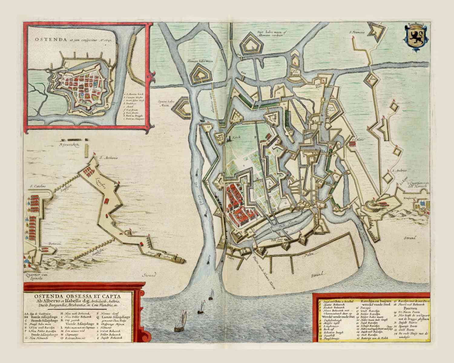 Stadsplattegrond van Oostende in 1649 uitgegeven door Joan Blaeu.