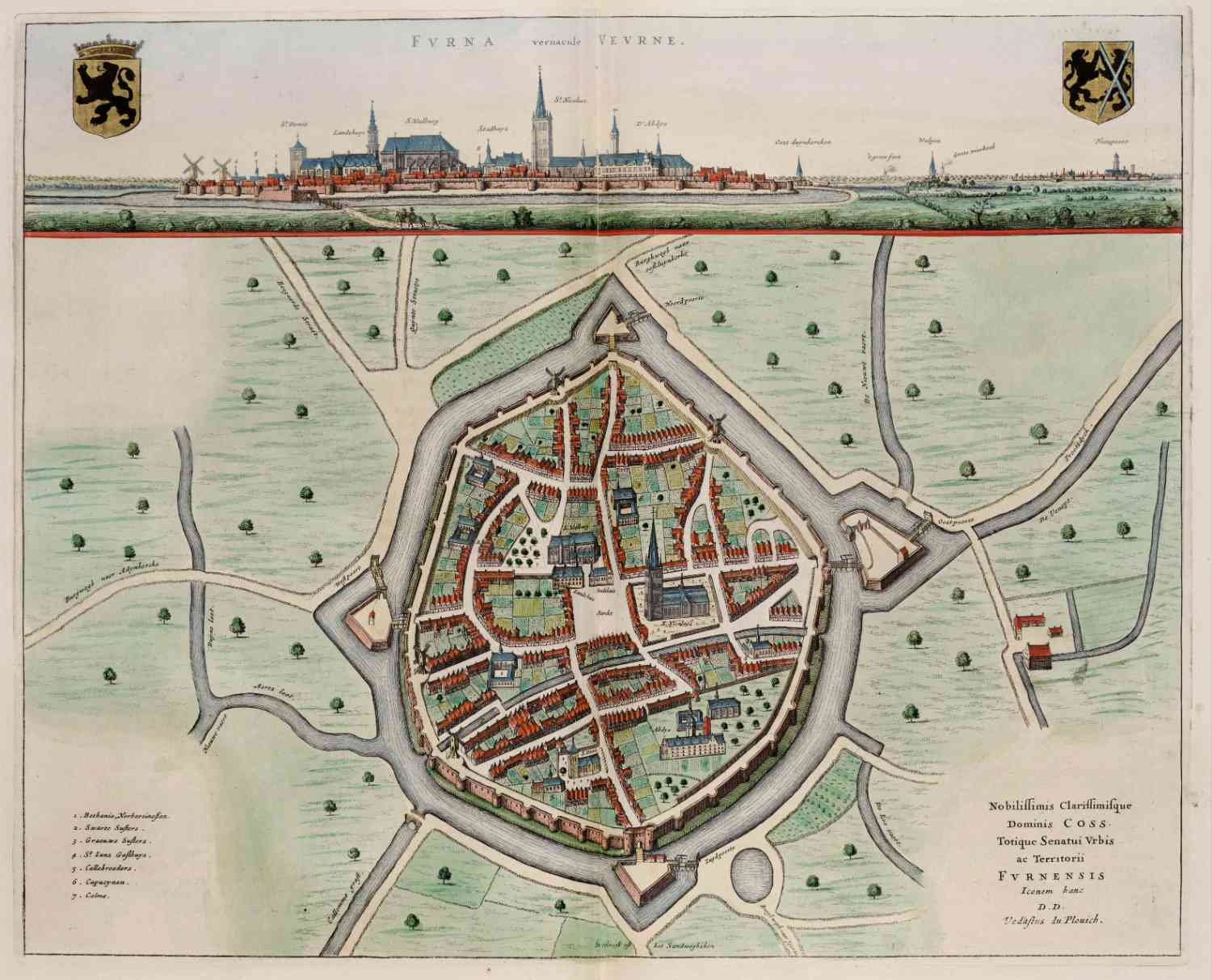 Stadsplattegrond van Veurne in 1649 uitgegeven door Joan Blaeu.
