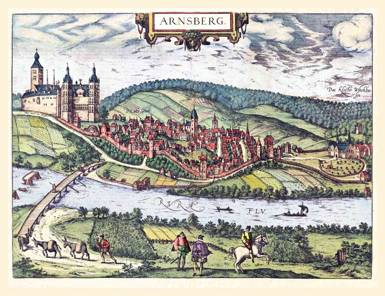 Gezicht op Arnsberg in 1588 uitgegeven door Braun en Hogenberg.