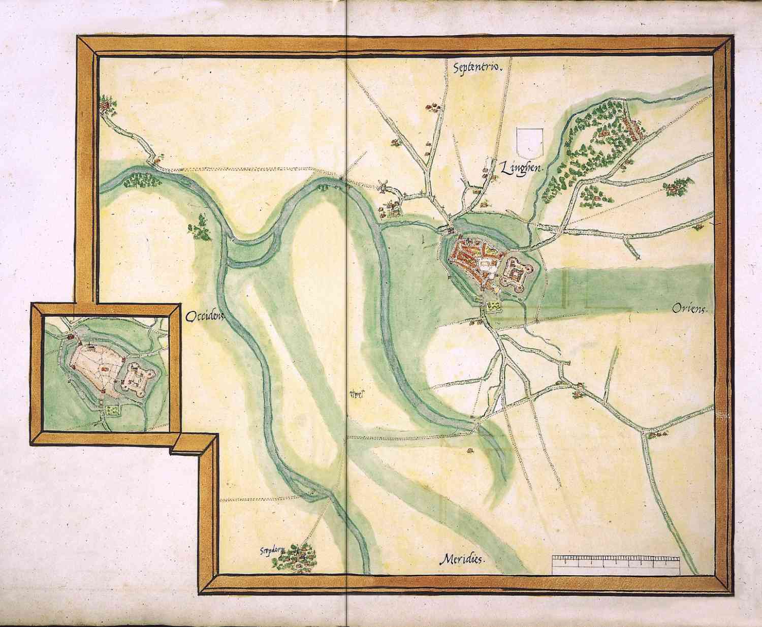 Kaart van Lingen in 1545 getekend door Jacob van Deventer.