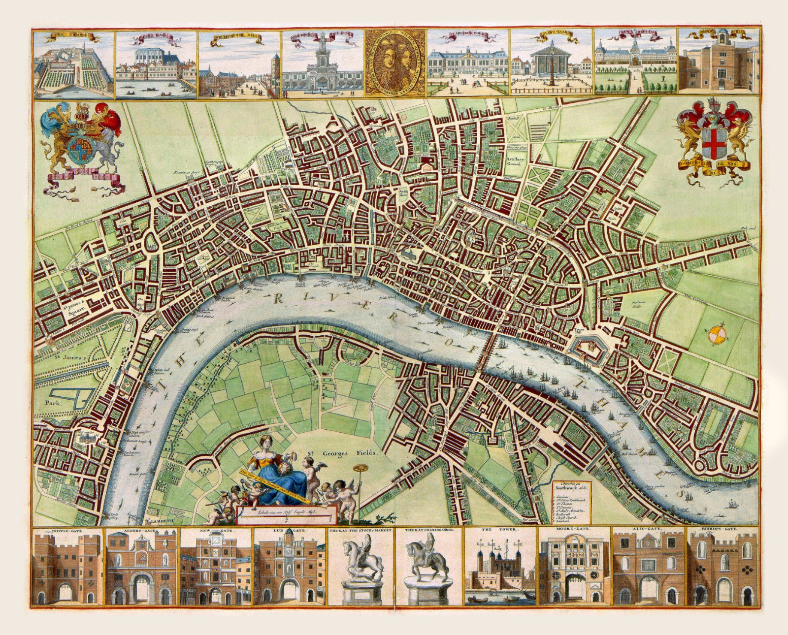 Stadsplattegrond van London omstreeks 1670 gemaakt door W.Holler afkomstig uit de Atlas van Van der Hagen.