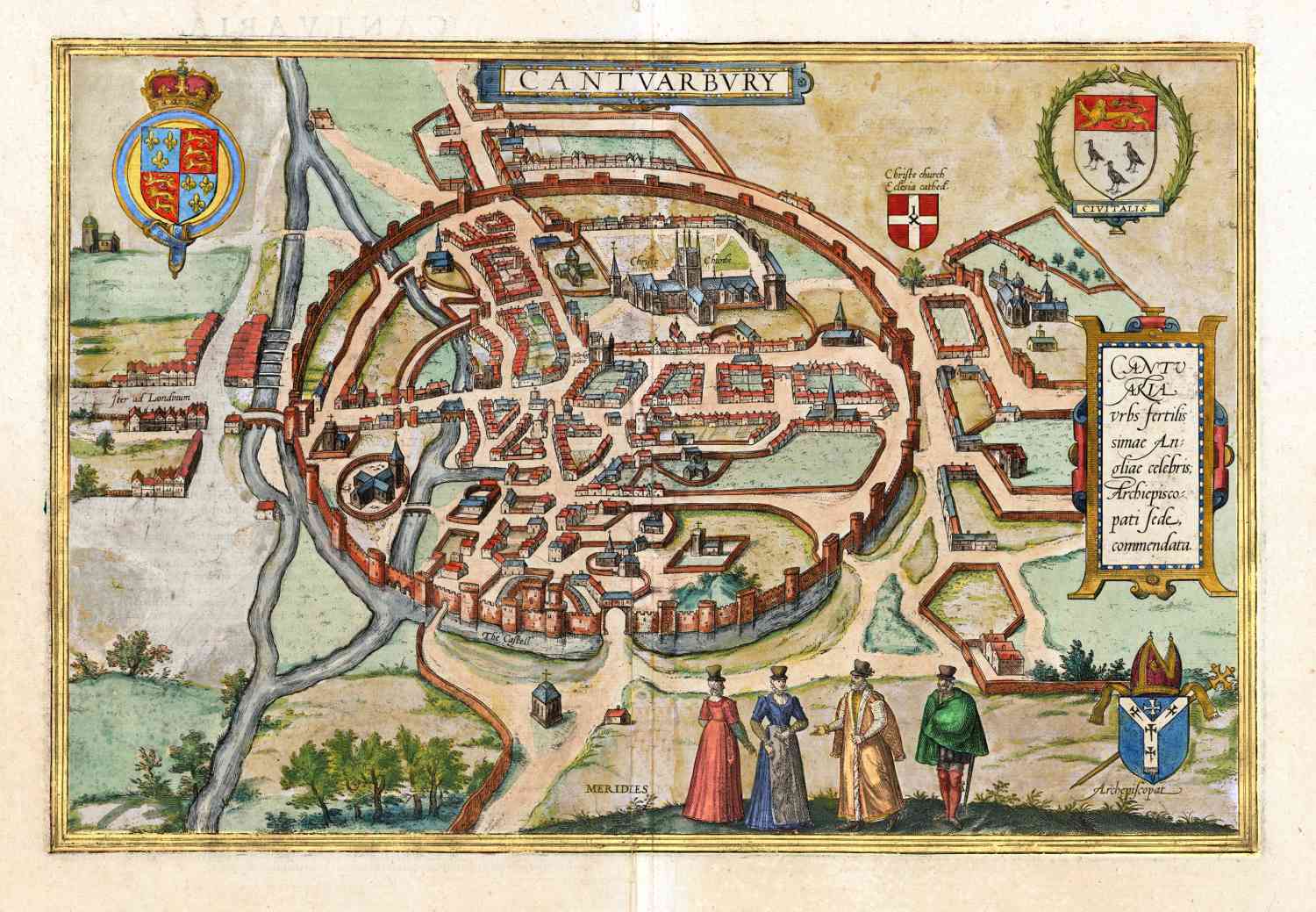Stadsplattegrond van Canterbury in 1617 uitgegeven door Braun en Hogenberg.