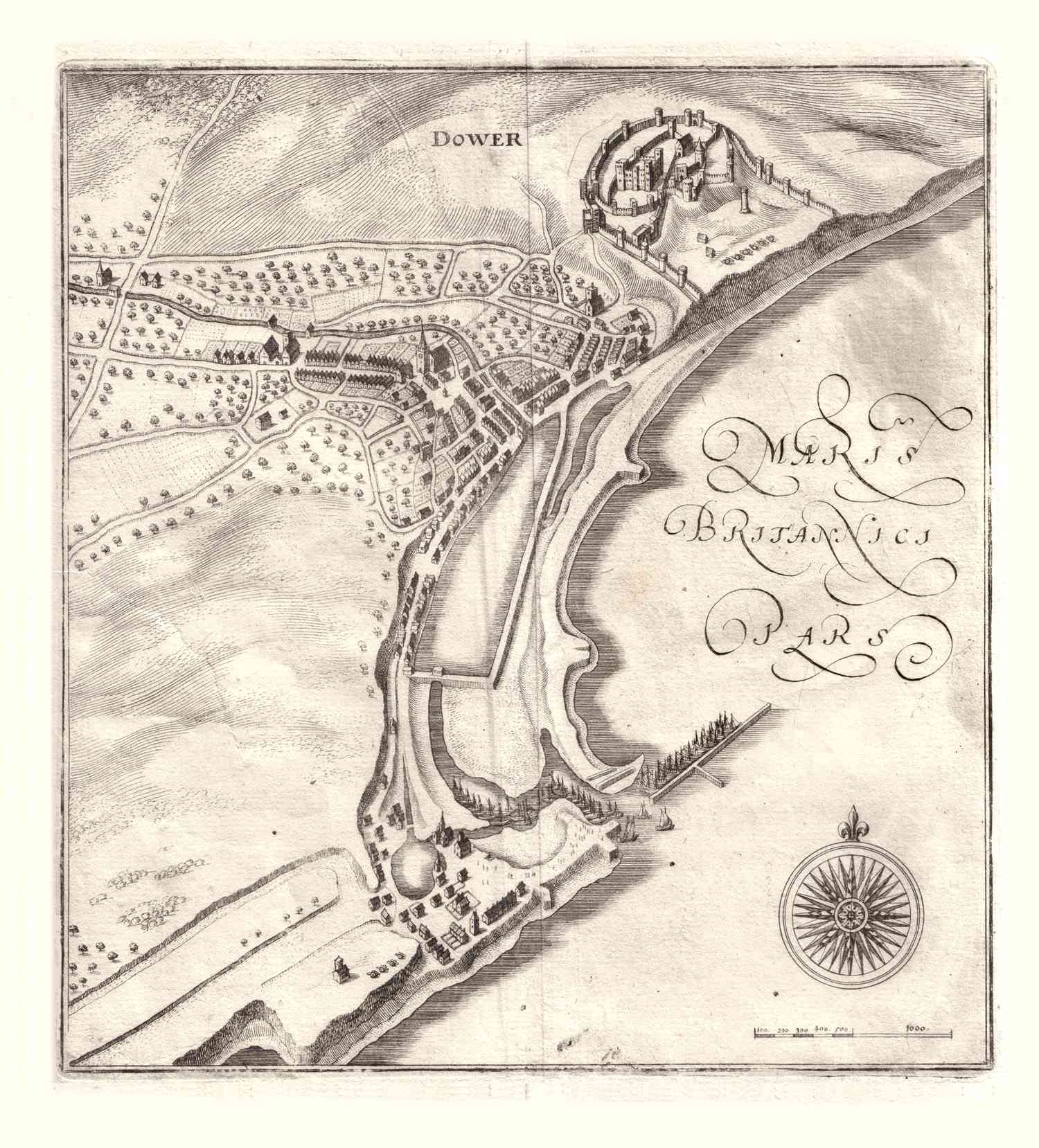 Klein ongekleurd kaartje van Dover, in 1661 uitgegeven door Rutger Hermannides.