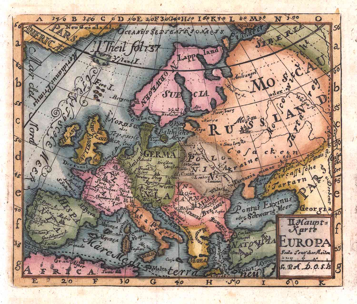 Klein kaartje van Europa in 1733 uitgegeven door Desing.