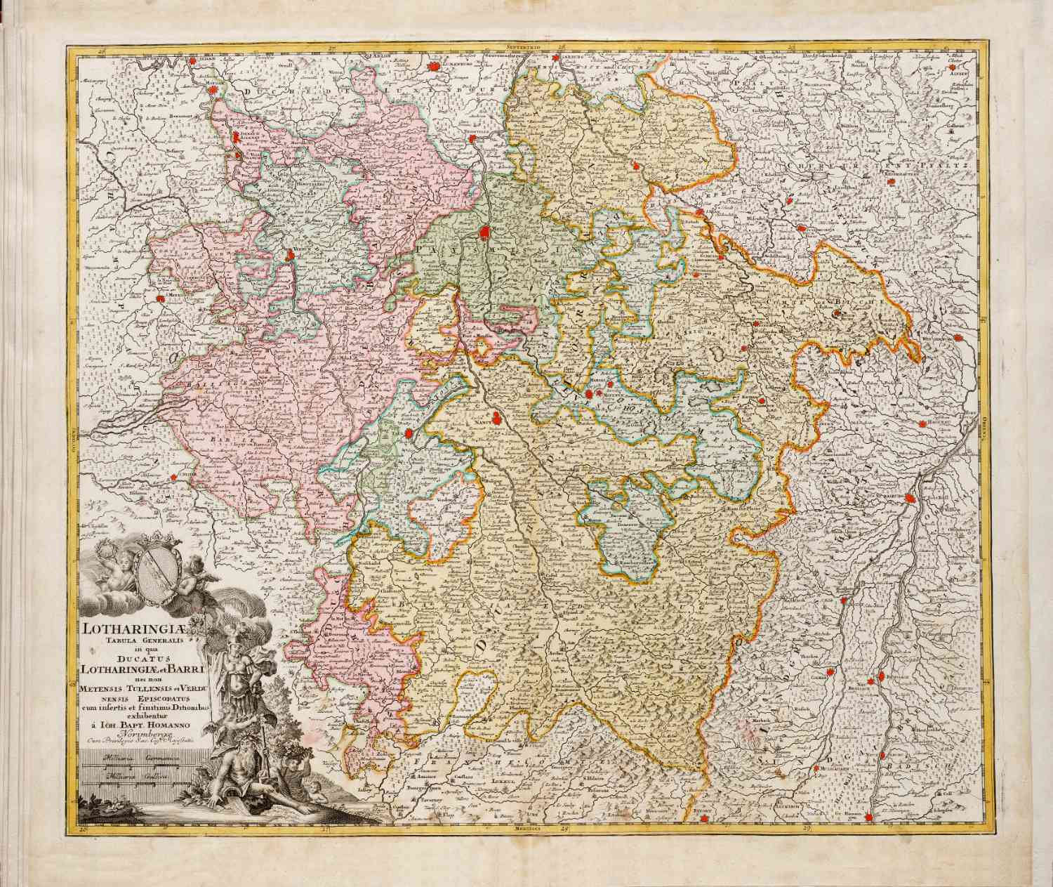 Kaart van Noord Frankrijk, Metz, Nancy, Straatsburg, grensgebied met Luxemburg en Duitsland.