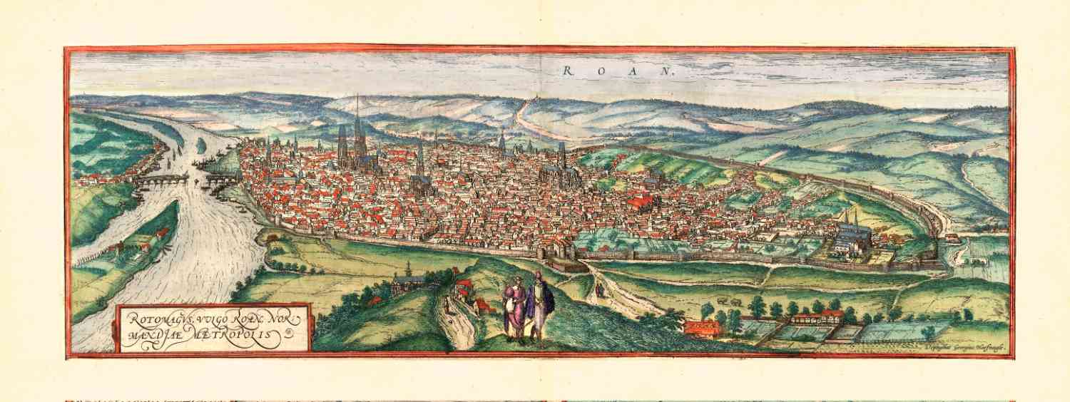 Gezicht op Rouan, in 1572 uitgegeven door Braun en Hogenberg.