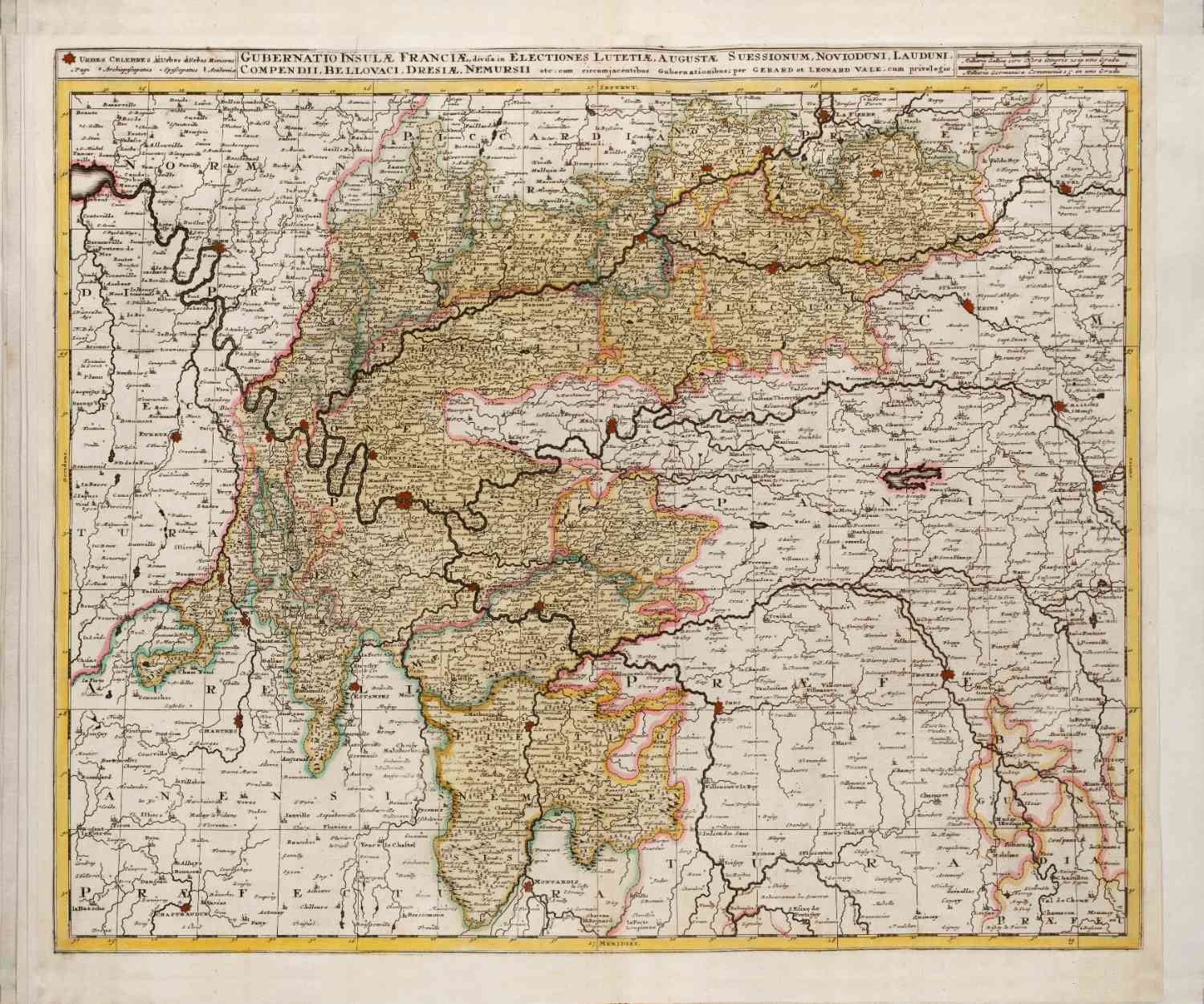 Kaart van Ile de France met Parijs en de rivieren Marne en Seine.