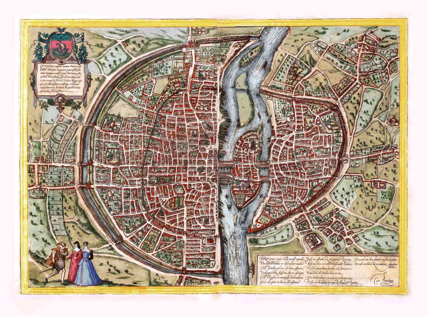 Zeer vroege kaart van Parijs, in 1575 uitgegeven door Braun en Hogenberg.