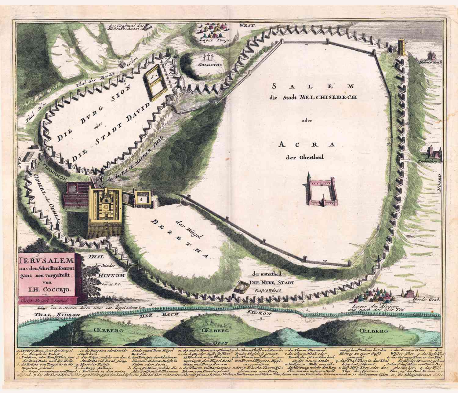 Plattegrond van Jerusalem, in 1719 uitgegeven door Chr.Weigel.