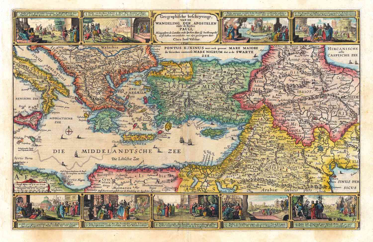 Reisgebied apostel Paulus in Middellandse Zee gebied 1642 Visscher