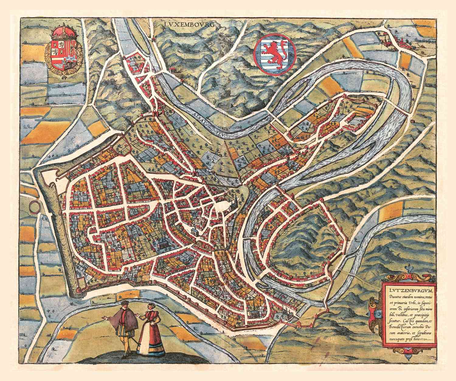 Kaart afkomstig uit Stedenatlas Civitates Orbis Terrarum, uitgegeven van 1572 tot 1618, een verzameling van 546 kaarten en illustraties, door Antwerpenaar Frans Hogenberg, die in Keulen met kanunnik Georg Braun een cartografische drukkerij begon.