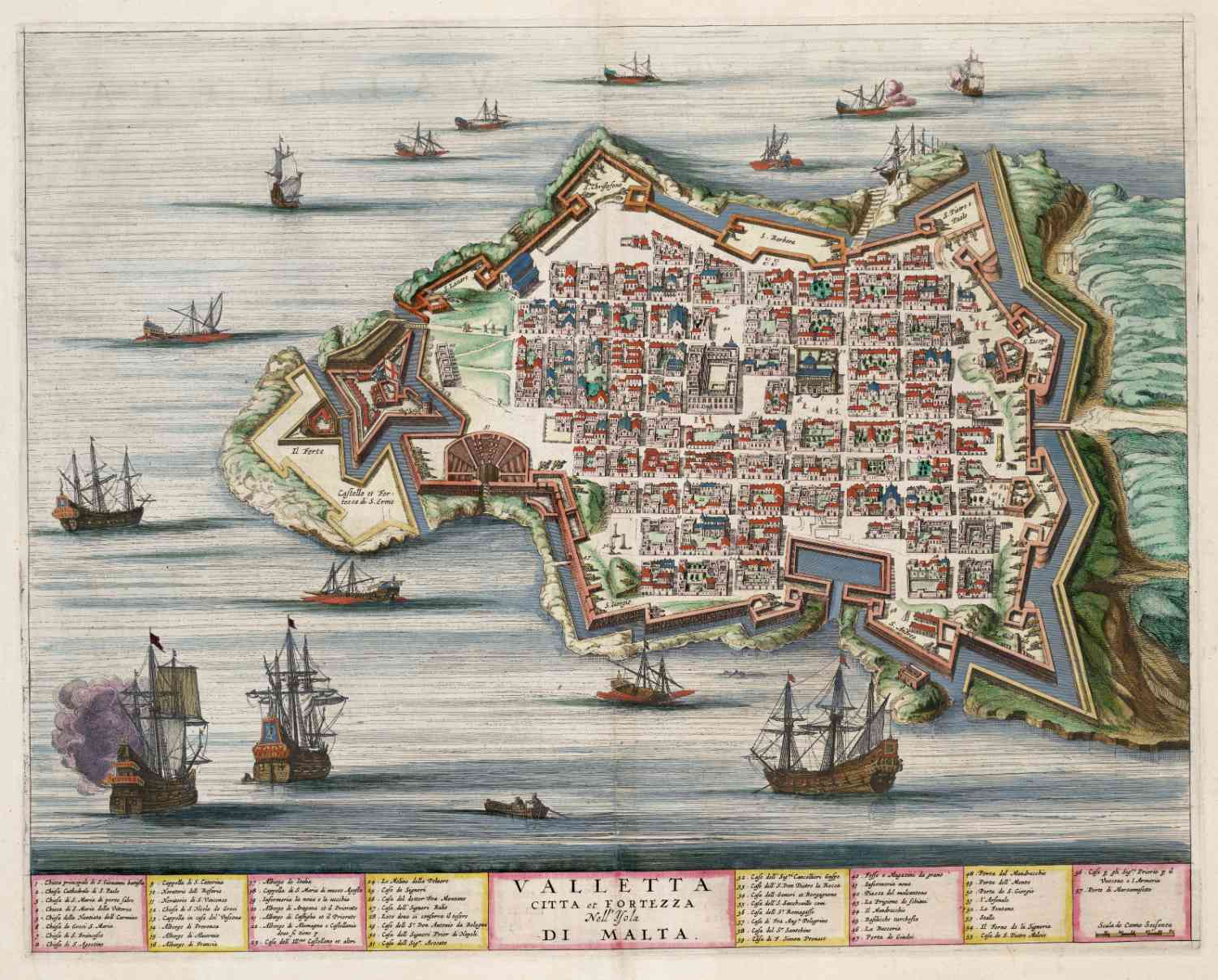 Kaart van de stad Valletta op het eiland Malta, in 1663 uitgegeven door Joan Blaeu.