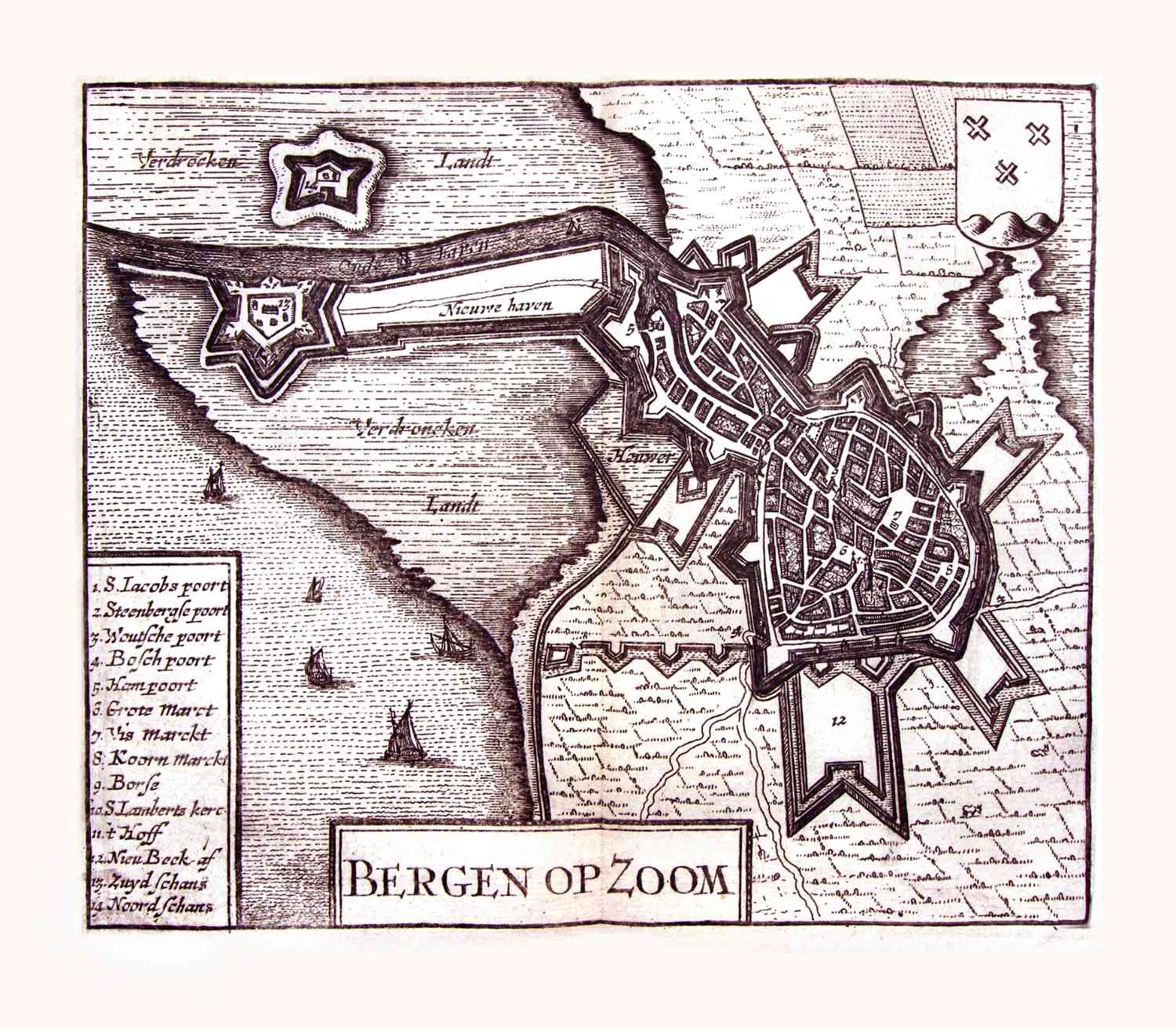 Klein ongekleurd plattegrondje van Bergen op Zoom.