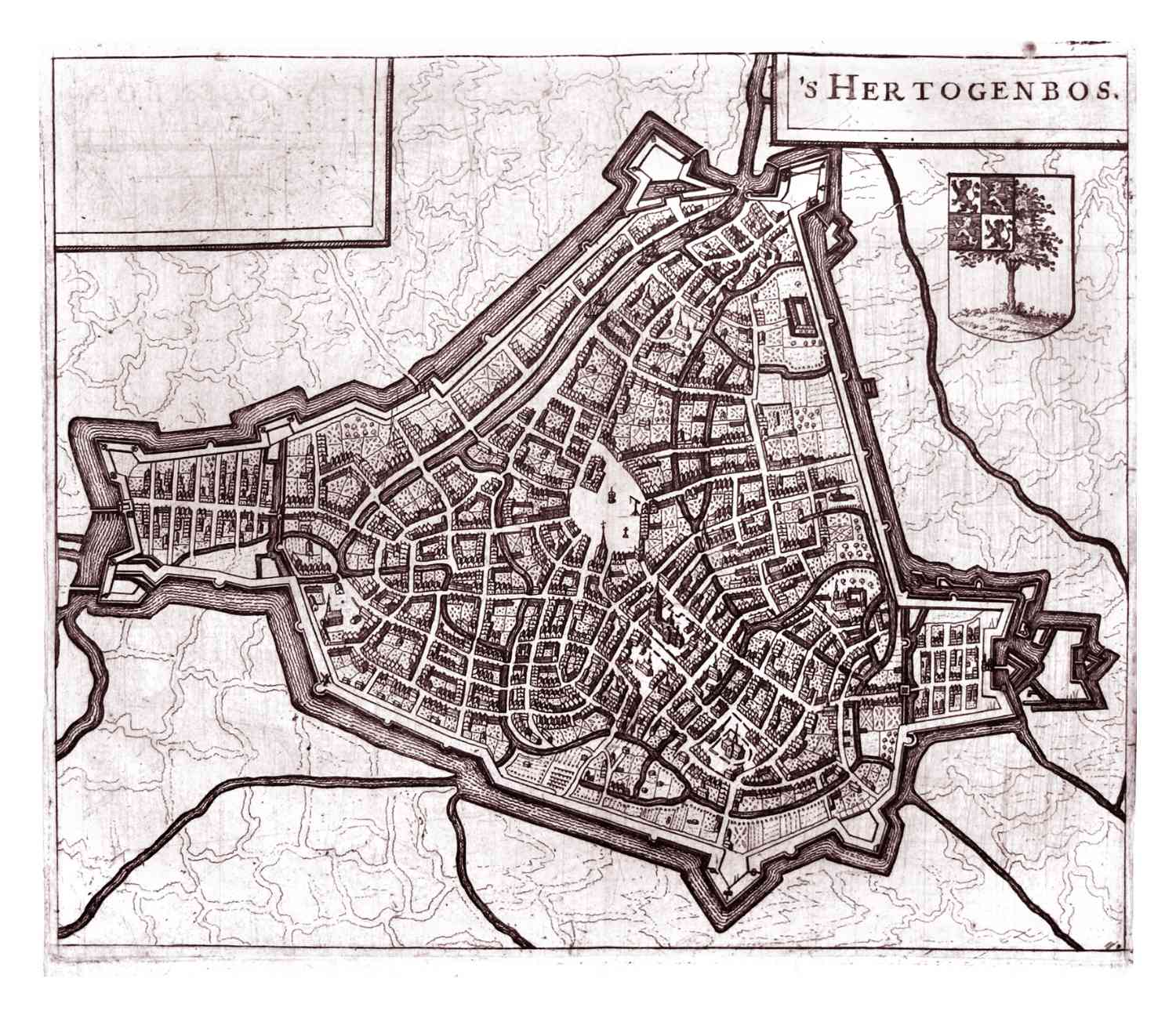 Klein kaartje van Den Bosch in 1633 uitgegeven door Guiccardini.