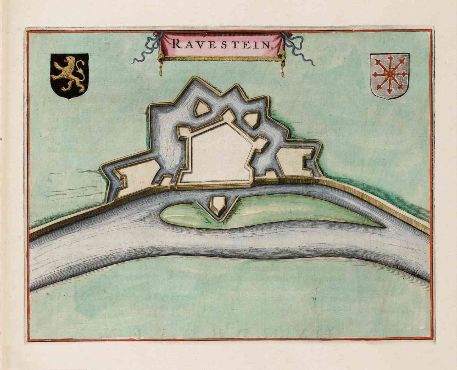 Kaartje van de verdedigingswerken van Ravenstein, in 1649 uitgegeven door Joan Blaeu.
