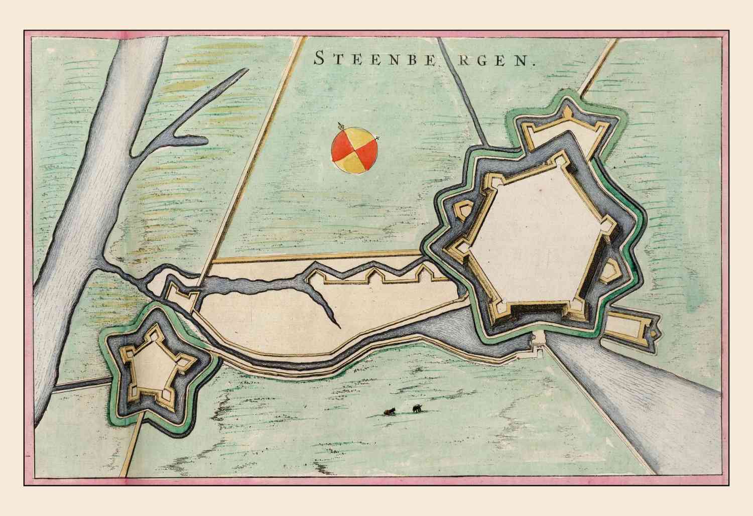 Zogenaamde wallenkaart (kaart waar alleen de verdedigingswerken op staan en geen huizen) van Steenbergen