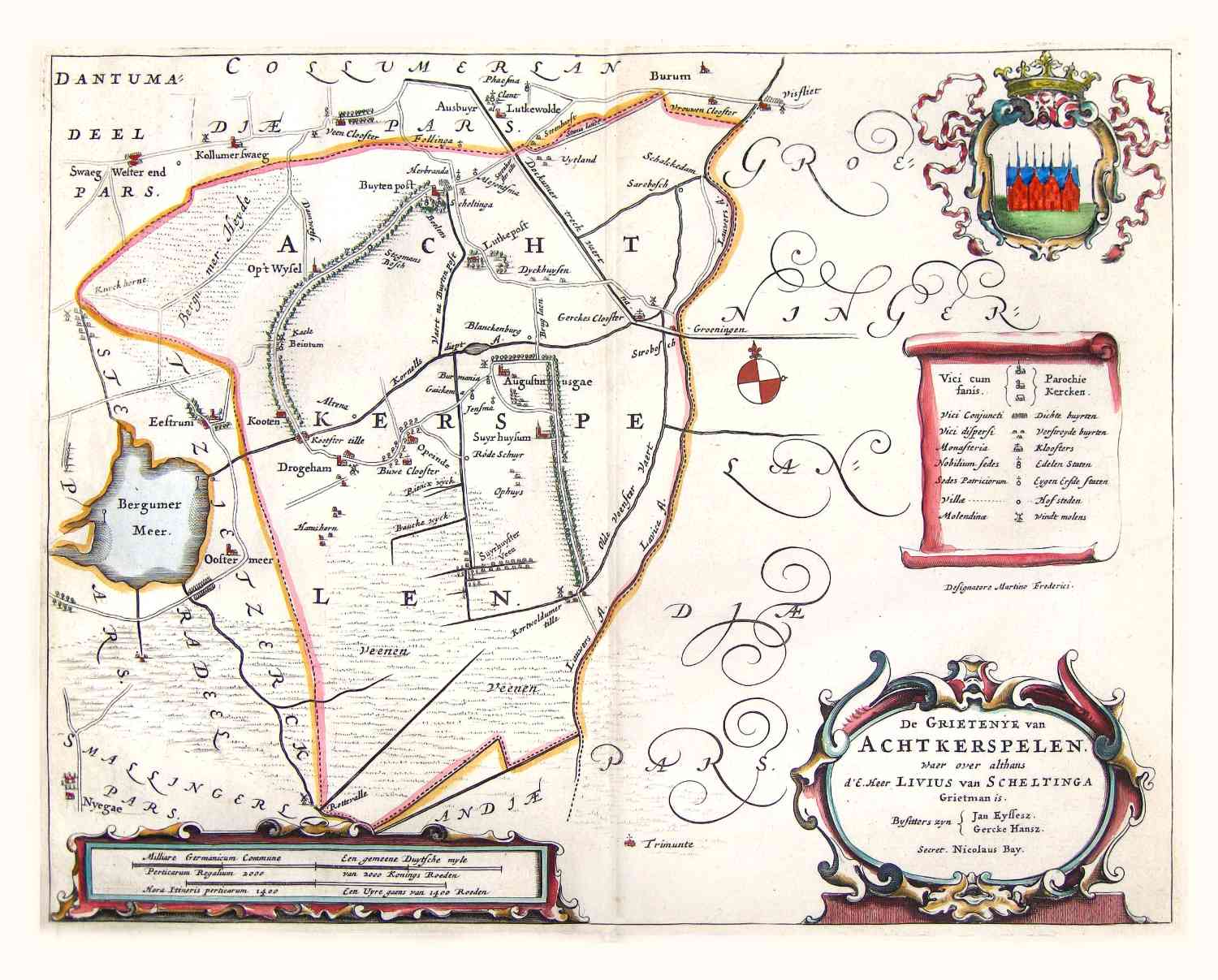 Kaart van Achtkerspelen, grietenij in Friesland, omgeving Buitenpost. In 1664 uitgegeven door Haackma-Gravius.