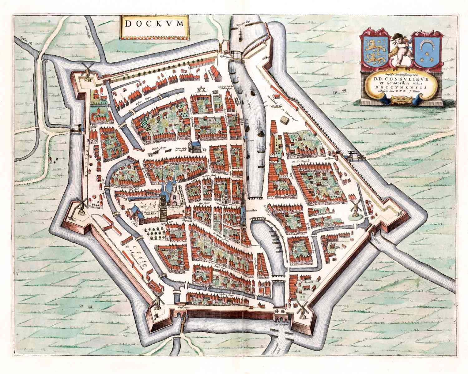 Stadsplattegrond van Dokkum uit 1649, gemaakt door Joan Blaeu.