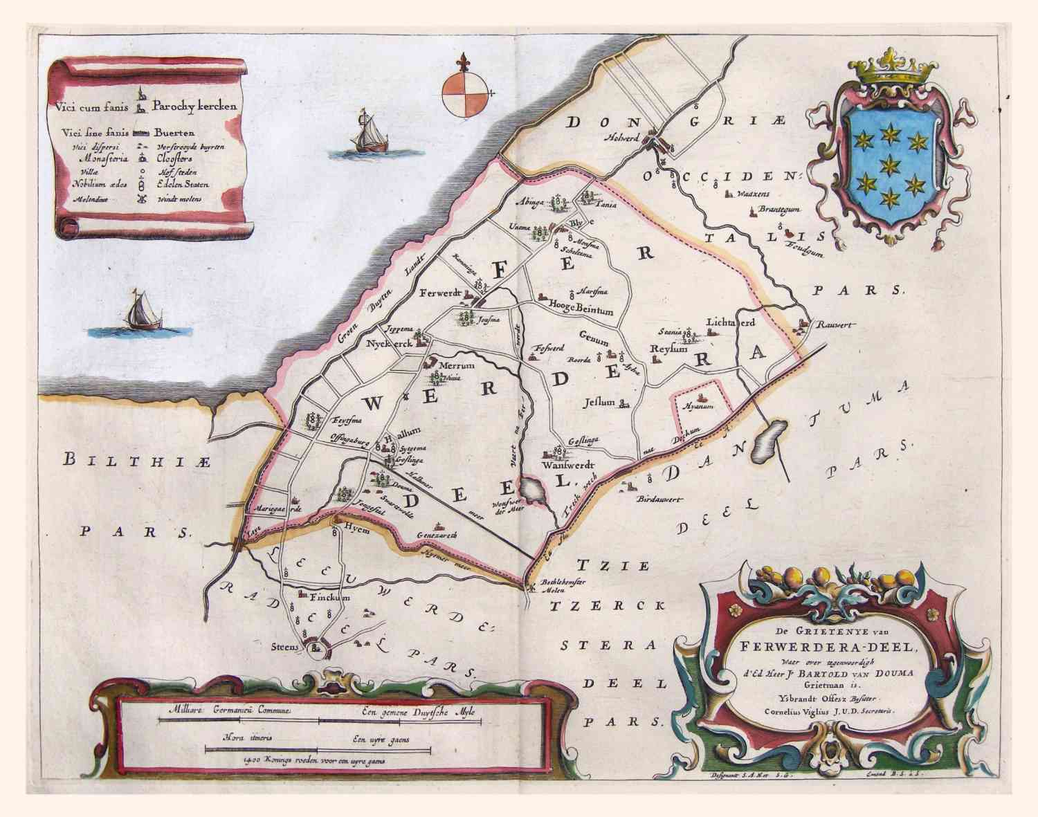Kaart van de Grietenij Ferwerderadeel, in 1664 uitgegeven door Haackma-Gravius.