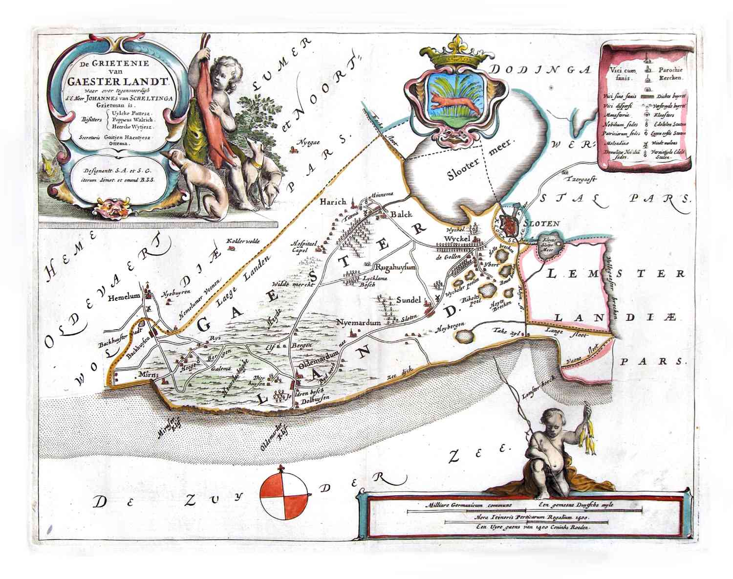 Kaart van een deel van Friesland Gaesterlandt met rechtsboven Sloten en het Slotermeer.