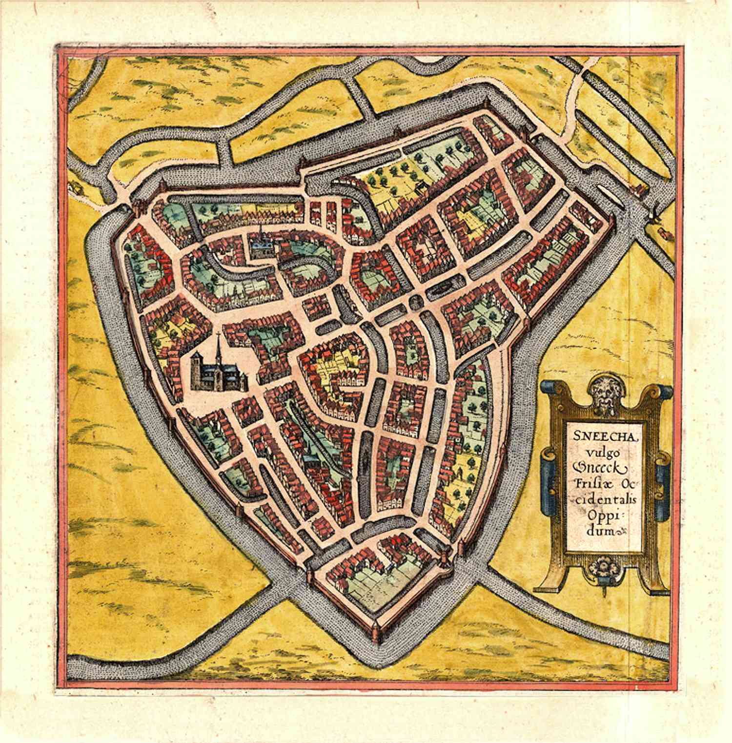 Kaartje van Sneek. Deel van de kaart van vier Friese steden.
