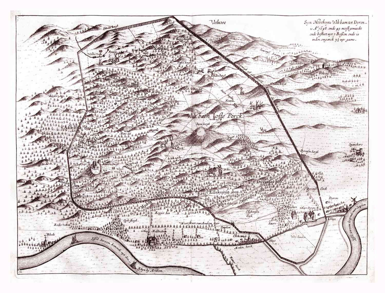 Kaart van het stuk Veluwe bij Dieren, genaamd De Wildbaan, 1654.