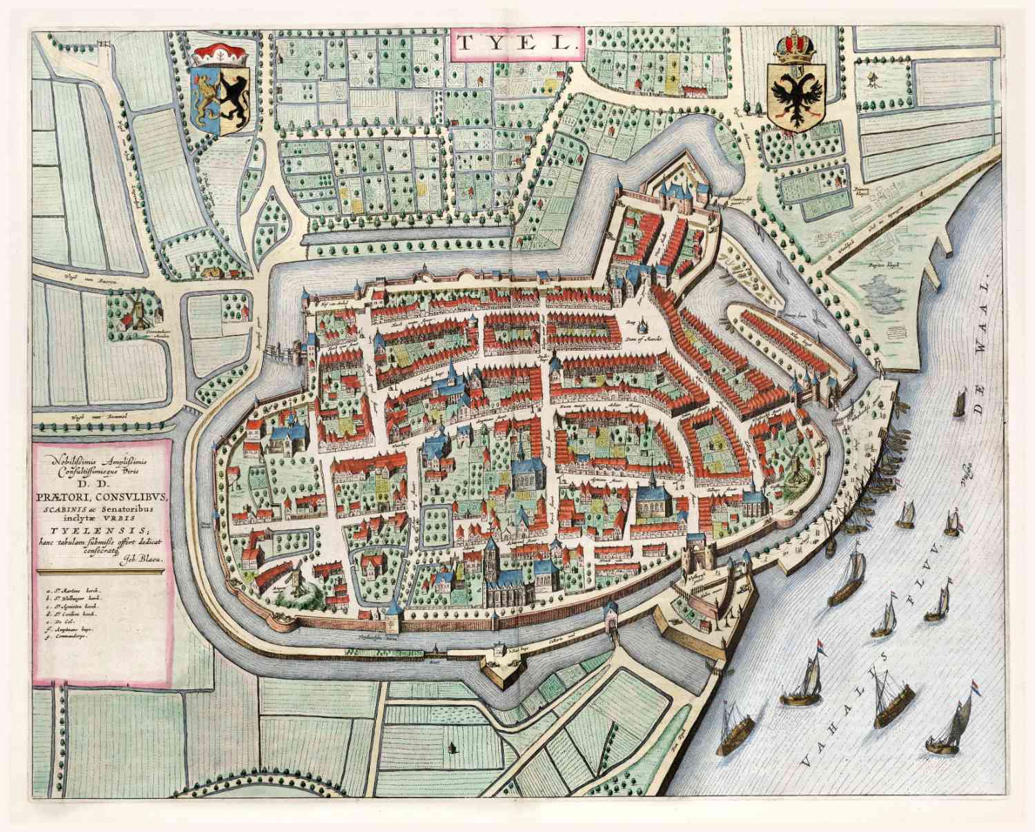 Stadsplattegrond van Tiel, in 1649 uitgegeven door Joan Blaeu.