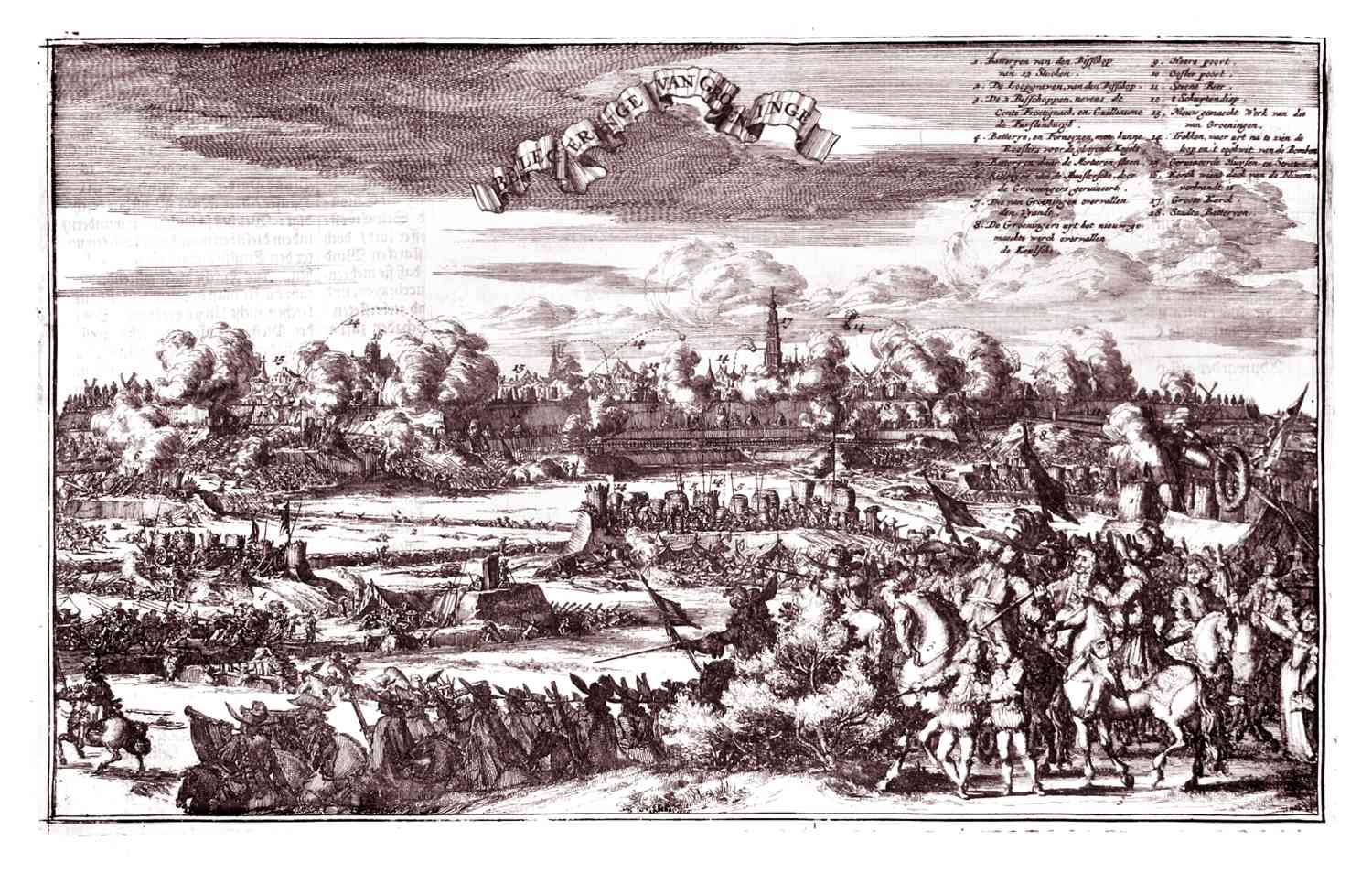 Fraaie afbeelding van de belegering van de Stad Groningen in 1675 gepubliceerd door L.van den Bosch.