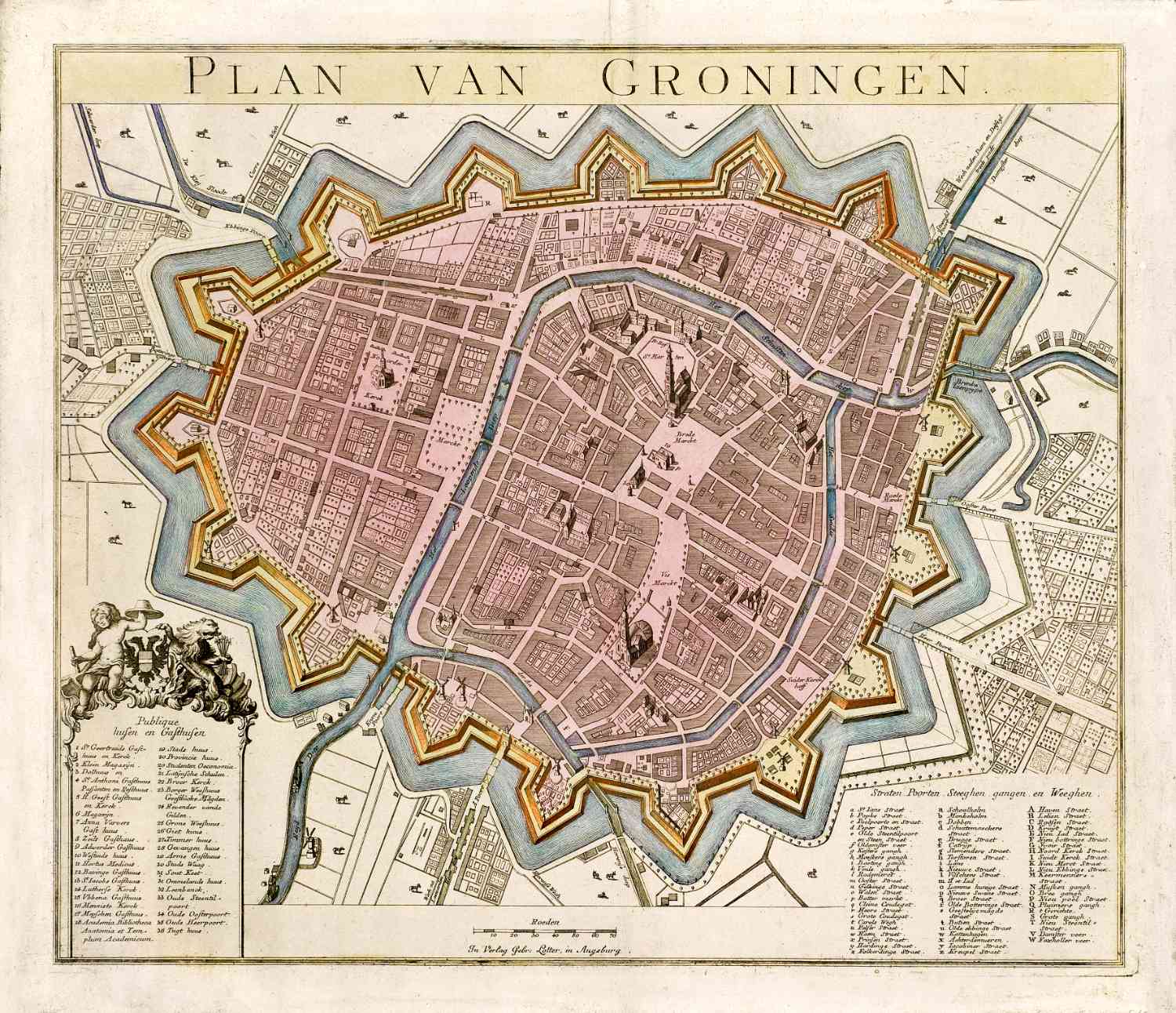 Fraaie kaart van de stad Groningen, in 1743 uitgegeven door H.Hofsnider.