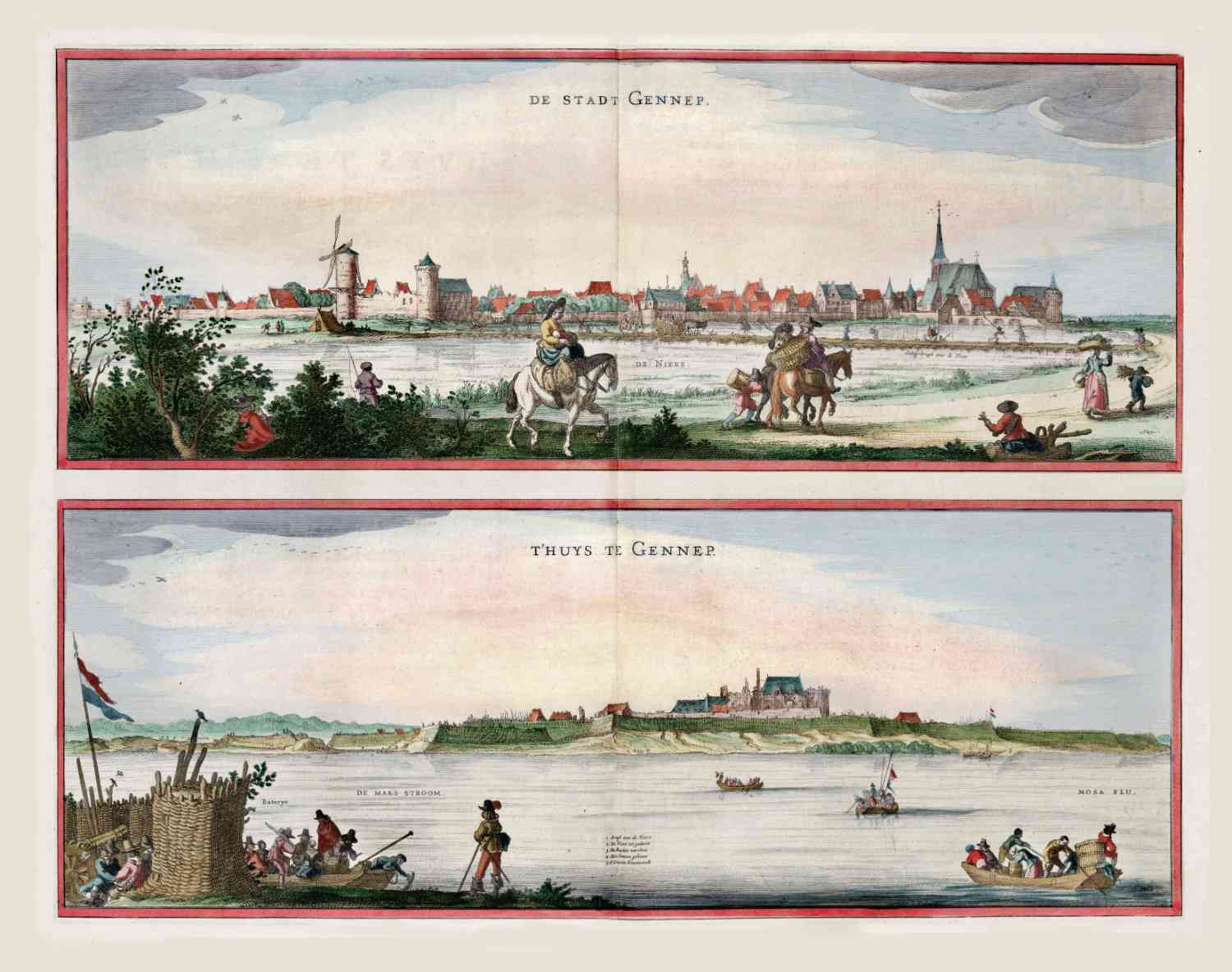 Blik op Gennep, stad en huis, in 1649 gepubliceerd door Joan Blaeu.