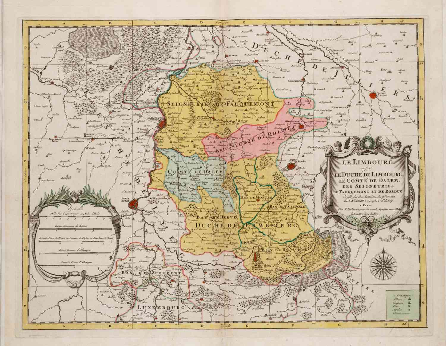 Kaart van Zuid Limburg en Hertogdom Limbourg (B) met o.a de steden Luik, Maastricht en Aken. In 1740 uitgegeven door Ottens.