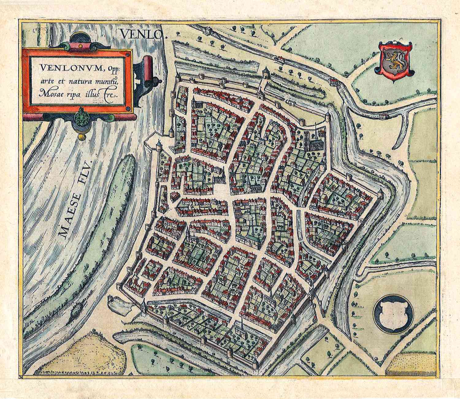 Stadsplattegrond van Venlo aan de Maas, in 1588 uitgegeven door Godefridi Kempensis.