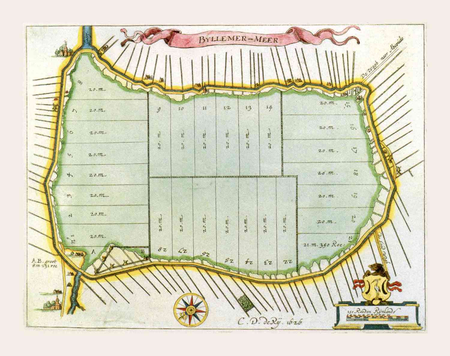 Kaart van de inpoldering van de Bijlmermeer bij Amsterdam
