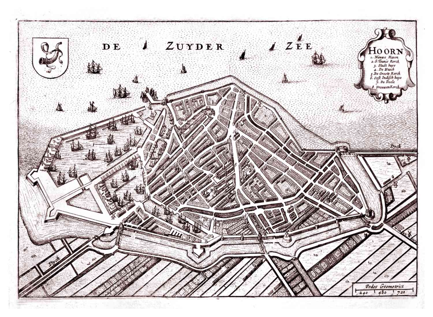 Plattegrond van Hoorn in 1632 gepubliceerd door Boxhorn.