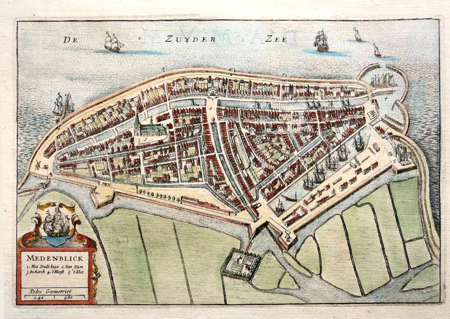 Stadsplattegrondje van Medemblik in 1634 uitgegeven door Boxhorn.