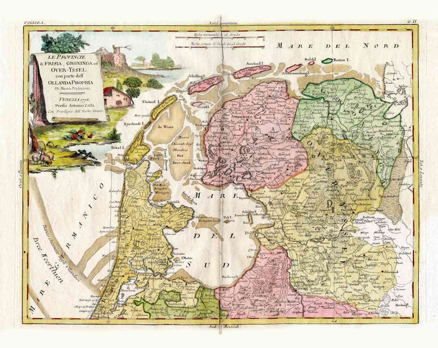 Antonio Zatta (1757-1797) was de meest prominente Italiaanse kaartenmaker van de laatste helft van de 18e eeuw. Hij werkte in Venetië. Zijn belangrijkste werk was de vierdelige “Atlante novissim” gepubliceerd van 1775 tot 1789, waaruit deze kaart afkomstig is.