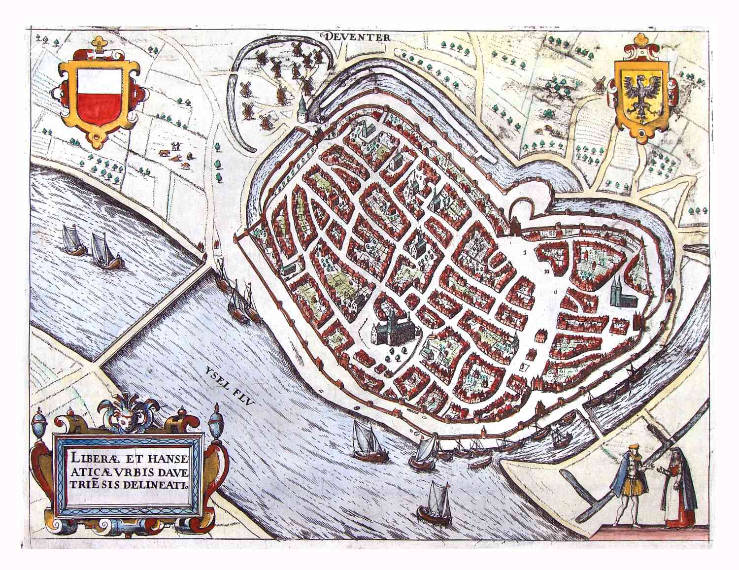 Ingekleurde versie van de kaart van Deventer van Guiccardini, uitgegeven in 1612.