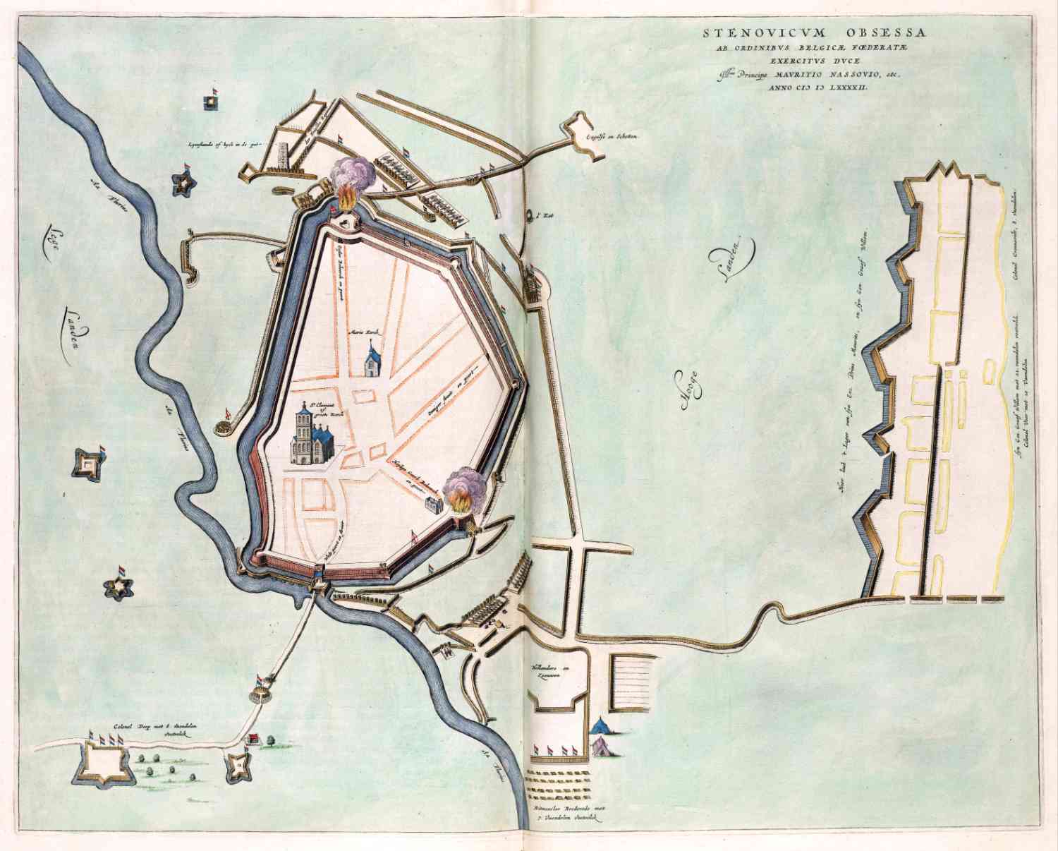 Kaart van het beleg van Steenwijk in 1592, uitgegeven in 1649 door Blaeu.