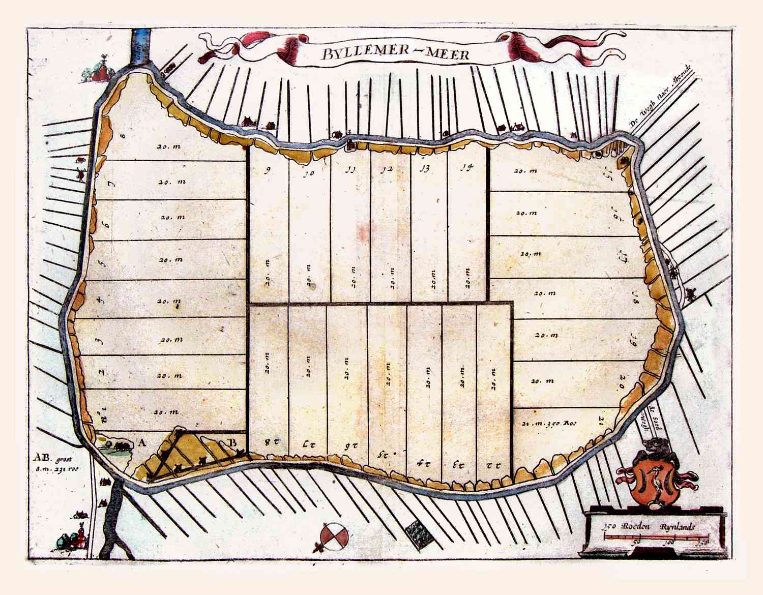 Kaart van de inpoldering van de Bijlmermeer bij Amsterdam, in 1660 uitgegeven door Aertsen Colom.