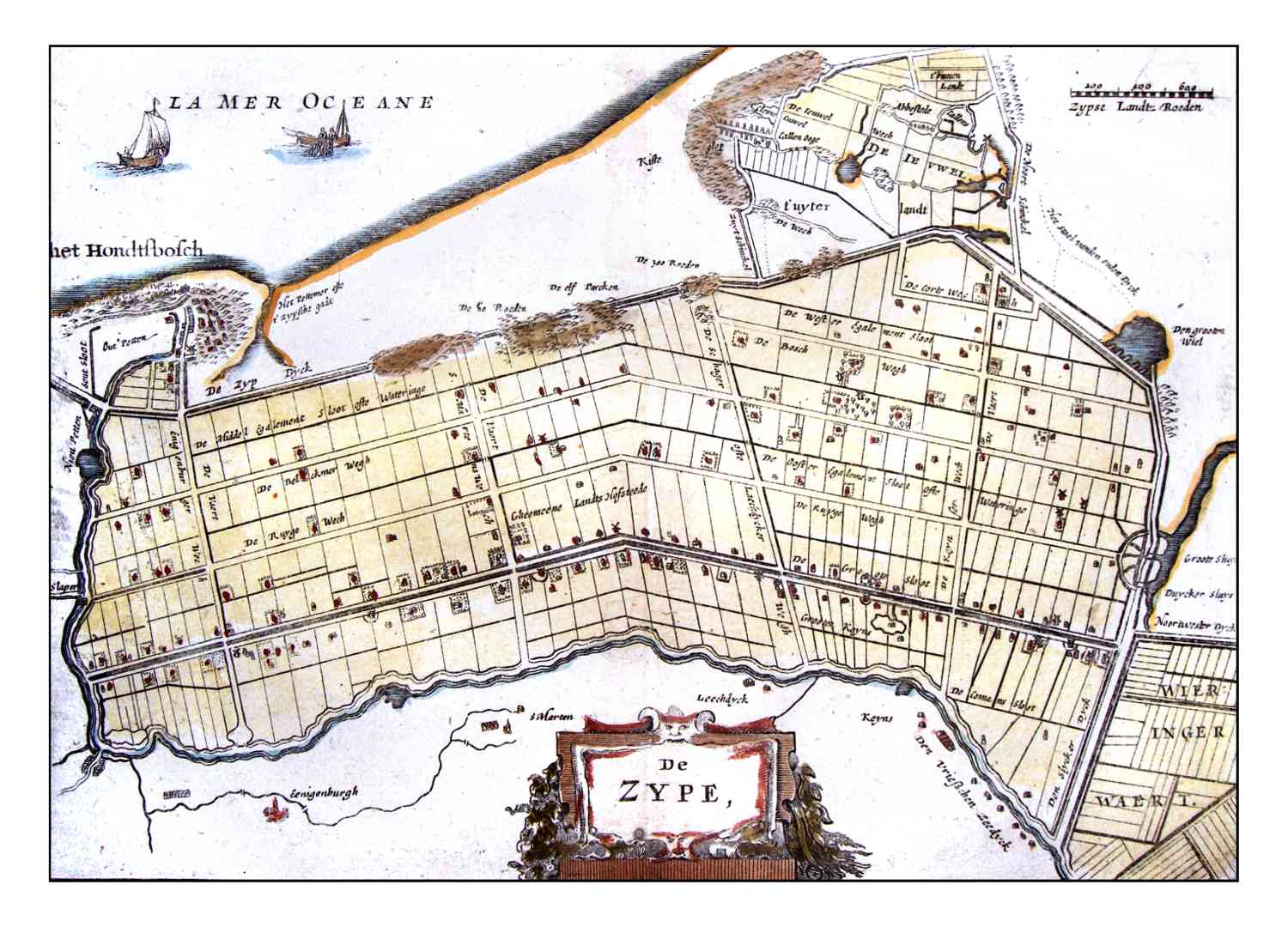 Kaart van de inpoldering van De Zijpe, in 1660 uitgegeven door Aertsen Colom.