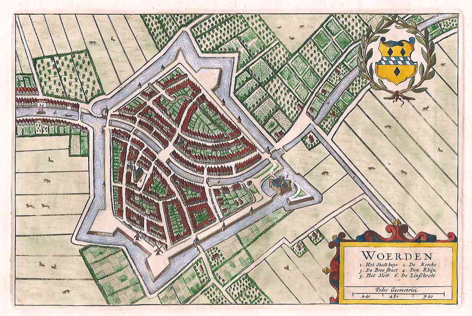 Stadsplattegrond van Woerden in 1649 gepubliceerd door Joan Blaeu.